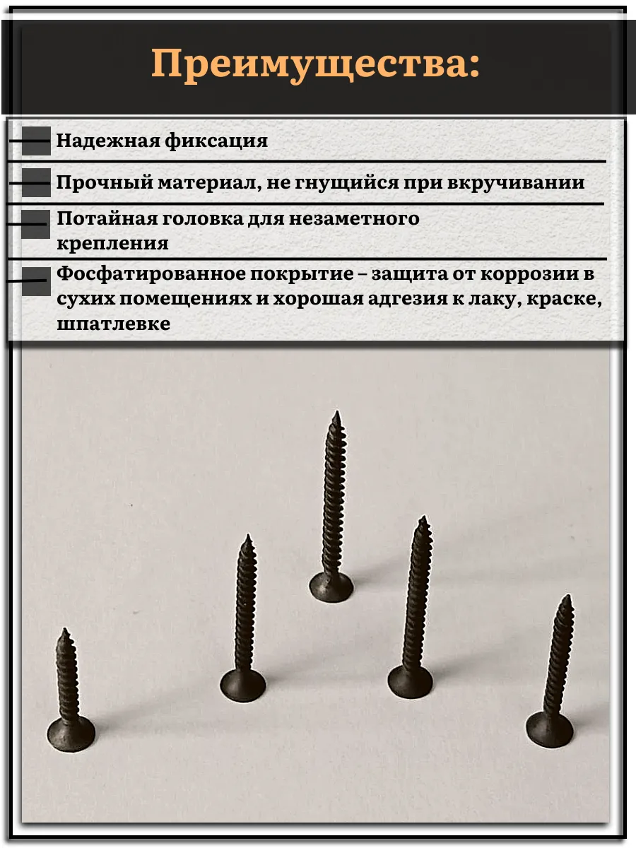 Саморез потайной по металлу 3,5х25 мм - 20штук;