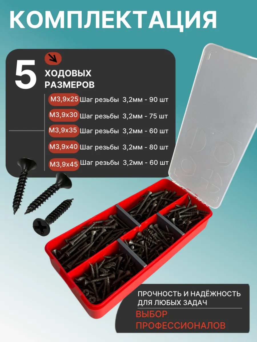 Саморезы для крепления ГВЛ 3,9 в органайзере НАБОР 1