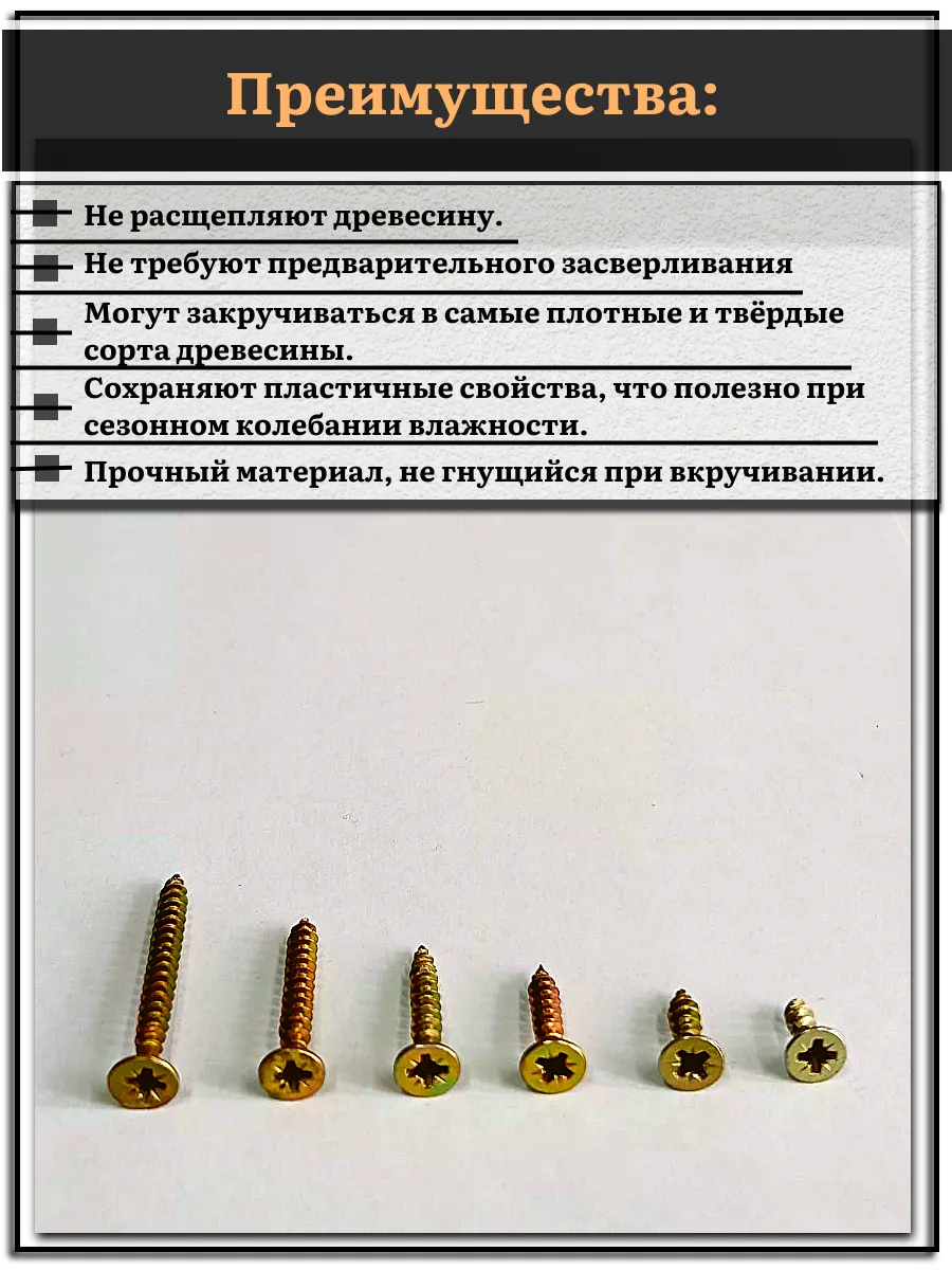 Саморез потайной по дереву 3х40 мм - 20штук.