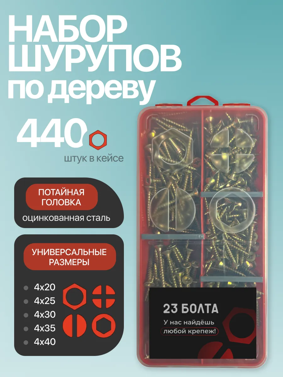 Саморезы по дереву М4 ЖЦ в органайзере НАБОР 1