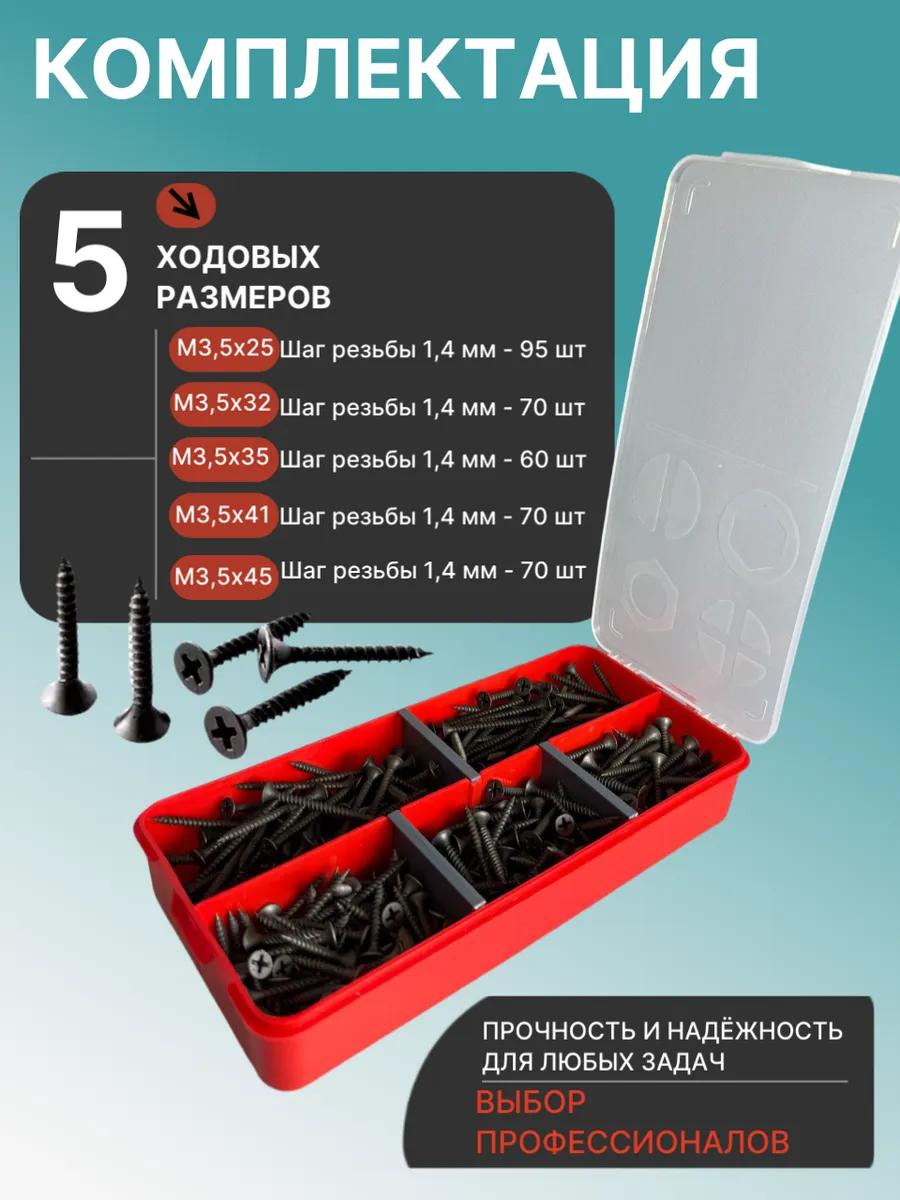 Саморезы по металлу 3,5 мелкая резьба в органайзере НАБОР 1