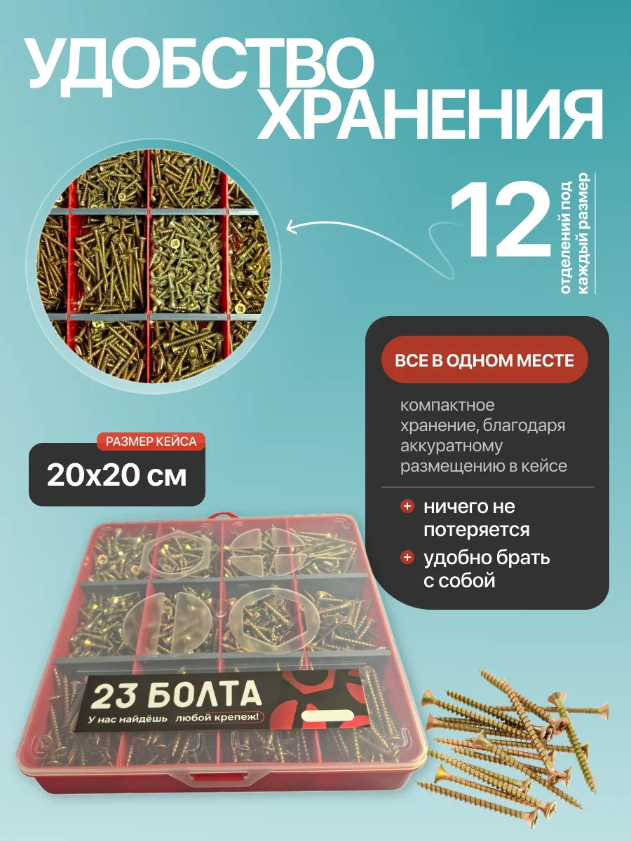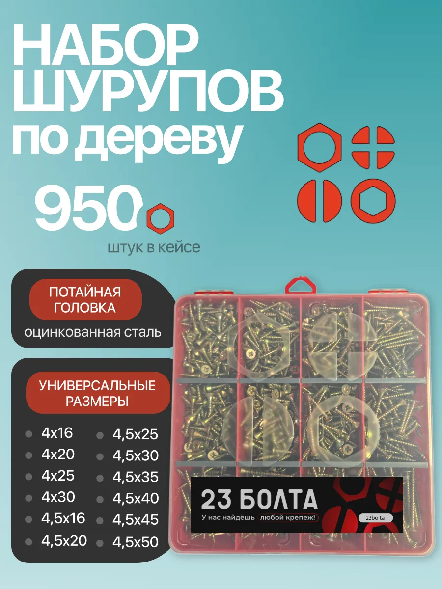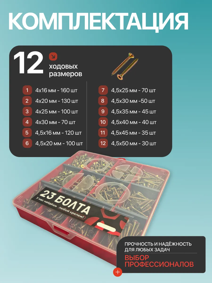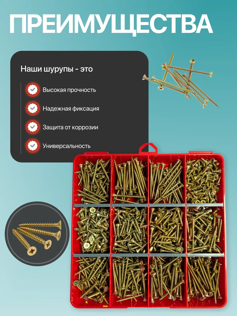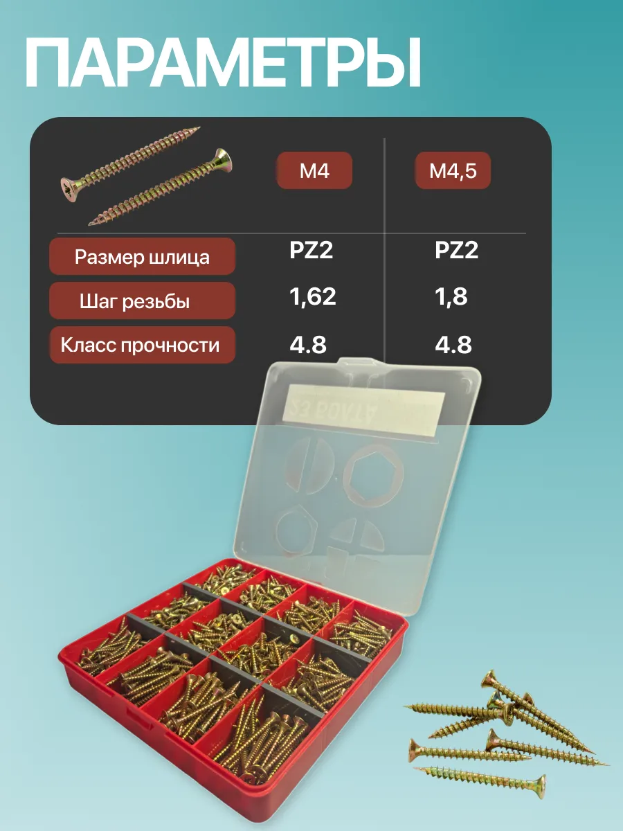 Саморезы шурупы по дереву М4 М4,5 ЖЦ в органайзере НАБОР 1