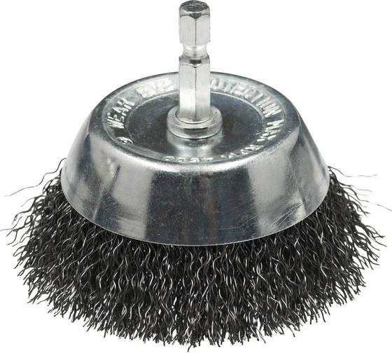 Щетка чашечная Мастер 116 Профоснастка 20202002 предназначена для шуруповертов. Применяется для удаления ржавчины, окалины и краски. Щетка имеет стальную гофрированную проволоку. Диаметр проволоки – 0.3 мм. Максимальное количество оборотов – 4500 об/мин. Хвостовик – шестигранный.