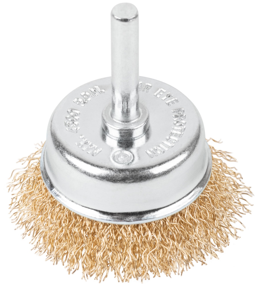 Щетка для дрели, тип «Чашка» со шпилькой. Предназначена для мягкой качественной зачистки различных металлических и деревянных поверхностей, снятия ржавчины, удаления лакокрасочных покрытий и других загрязнений. Отлично подходит для обработки больших плоскостей. Форма «Чашка» обеспечивает хорошую площадь прилегания к поверхности. Мягкая зачистка, латунированная проволока 0,3 мм.