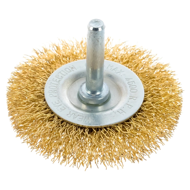 Щетка для дрели "Плоская", со шпилькой, латунированная витая проволока, 60 мм Matrix