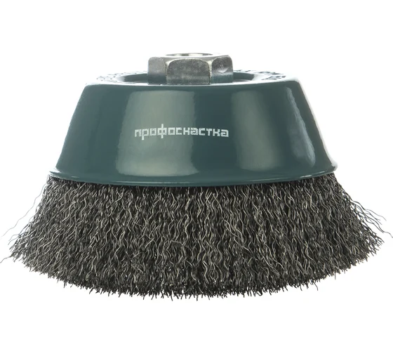 Щетка чашечная Мастер 006 Профоснастка 20101006 предназначена для угловой шлифовальной машины. Применяется для легких и средних зачистных работ. Щетка имеет стальную гофрированную проволоку. Диаметр проволоки – 0.3 мм. Максимальное количество оборотов – 4500 об/мин.