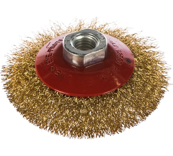 Щетка для УШМ "тарелка", латунир.витая проволока, 100 мм М14 Matrix
