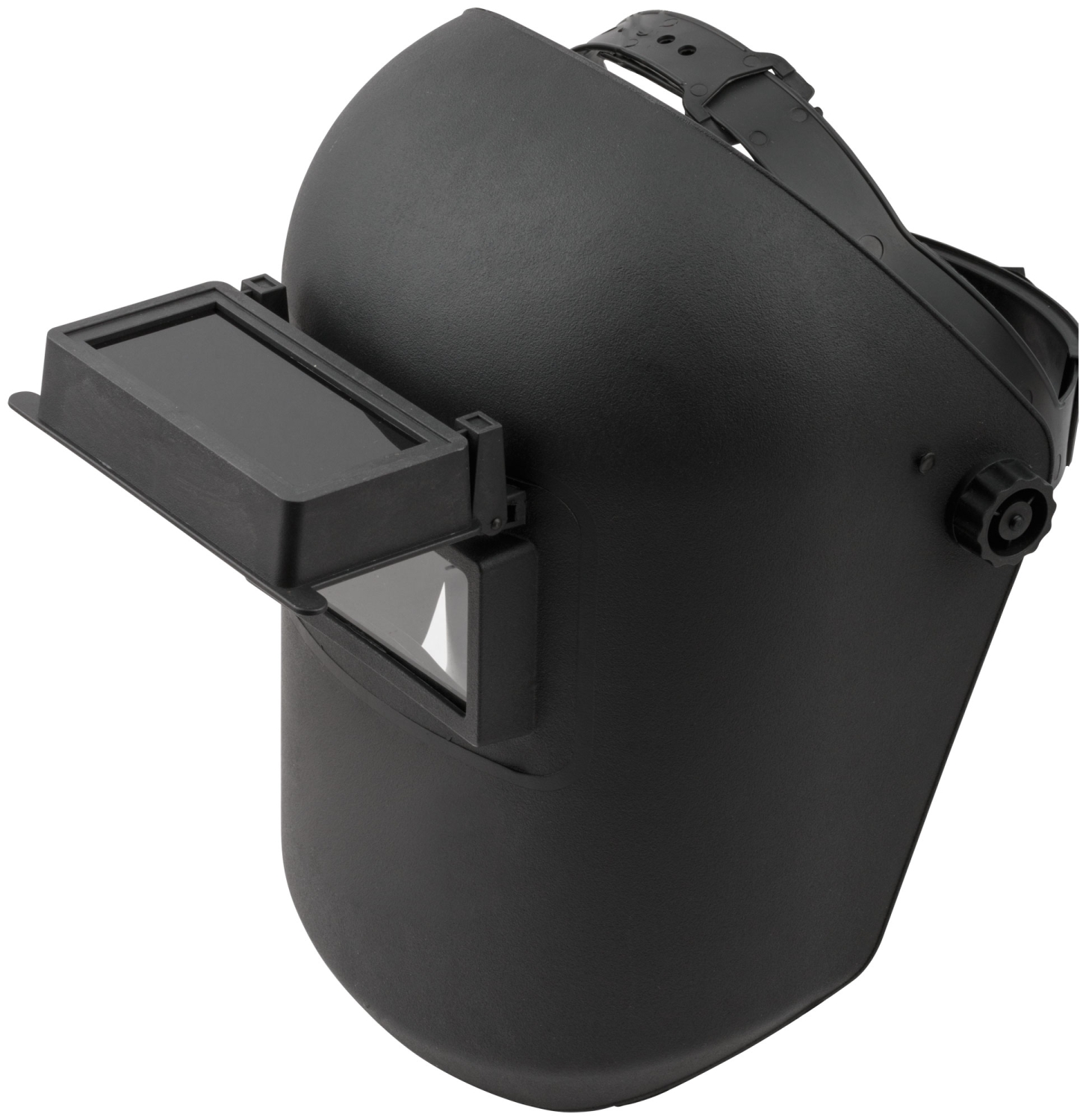 Щиток сварщика с откидывающимся стеклом. С креплением на голову. Сменное стекло 107 х 50:мм. Предназначена для защиты глаз при сварочных работах. Регулируемый, фиксируемый наголовник. Откидывающееся затемненное стекло. Степень затемнения DIN 10. Материал: пластик, термостойкое затемненное стекло.
