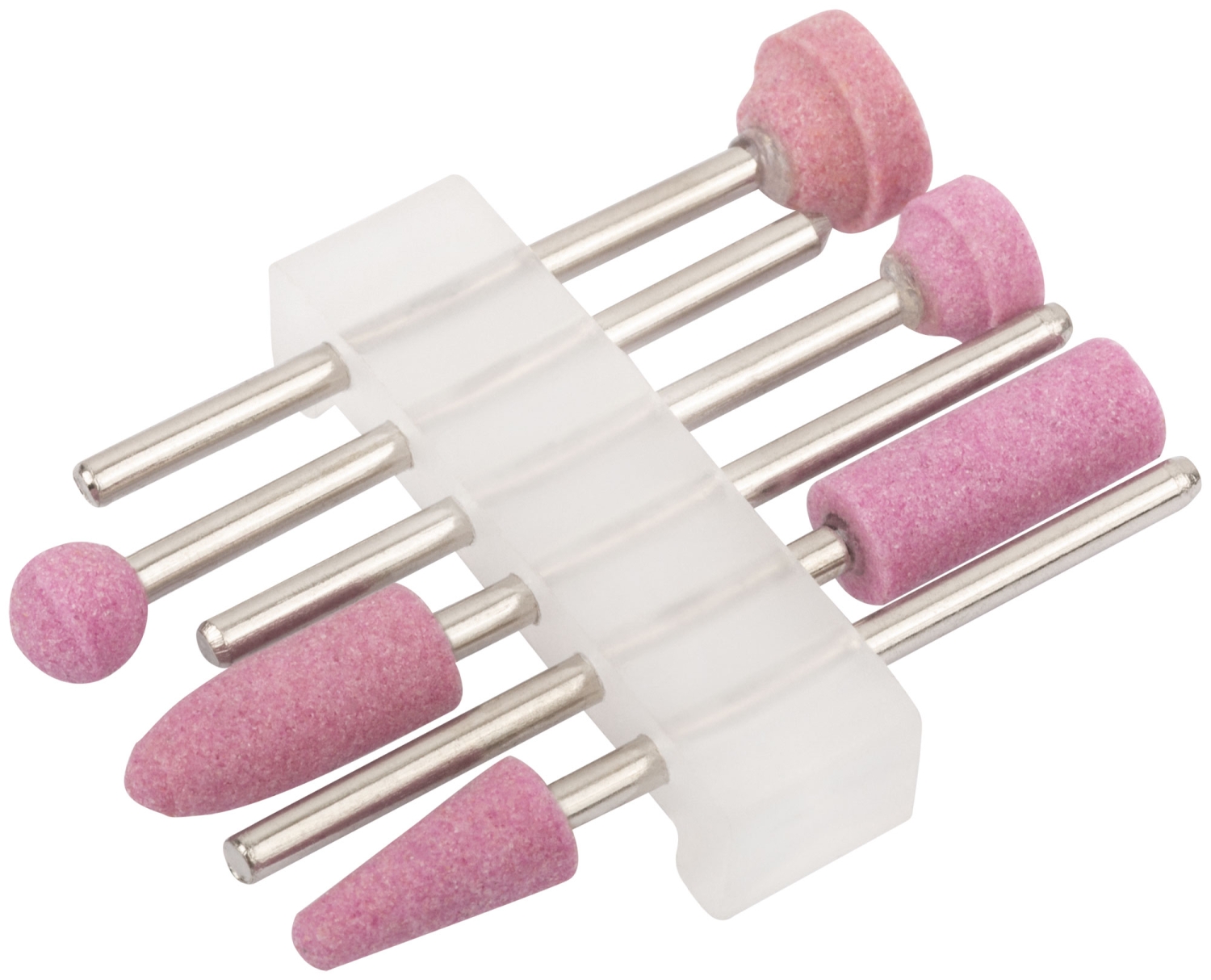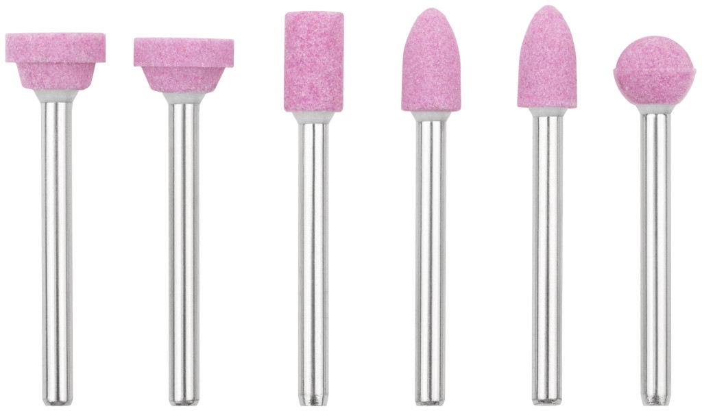 Для гравировальной машины. В наборе 6 шт. Предназначены для шлифовки изделий из стали и цветных металлов. Зернистость: P120. D хвостовика=3,1 мм. Материал: хвостовик из инструментальной стали, корунд. Упаковка: блистер.