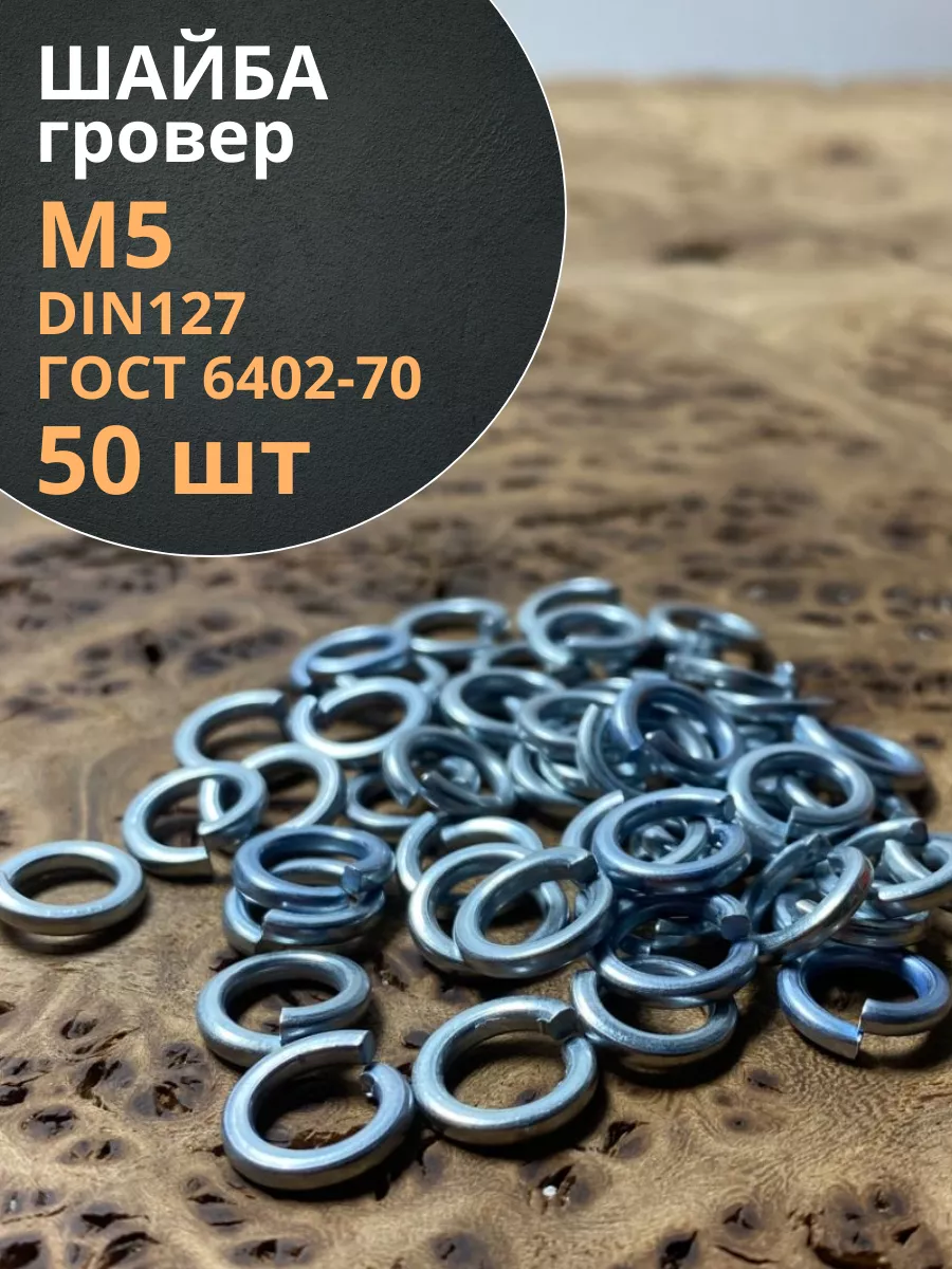 Шайба гровер пружинная оцинкованная М5 DIN127, 50 шт.