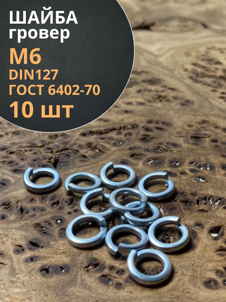 Шайба гровер пружинная оцинкованная М6 DIN127, 10 шт.