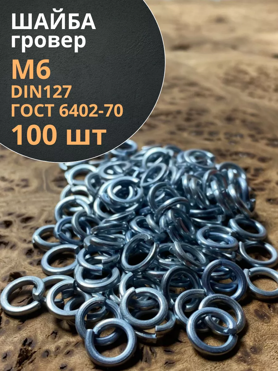 Шайба гровер пружинная оцинкованная М6 DIN127, 100 шт.