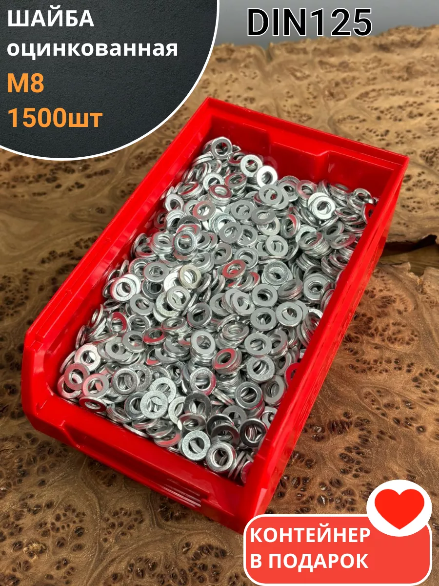 | Шайба М8 оцинкованная DIN125, 1500 шт. в контейнере | А21000800032507ф1500 | 1 шт. |