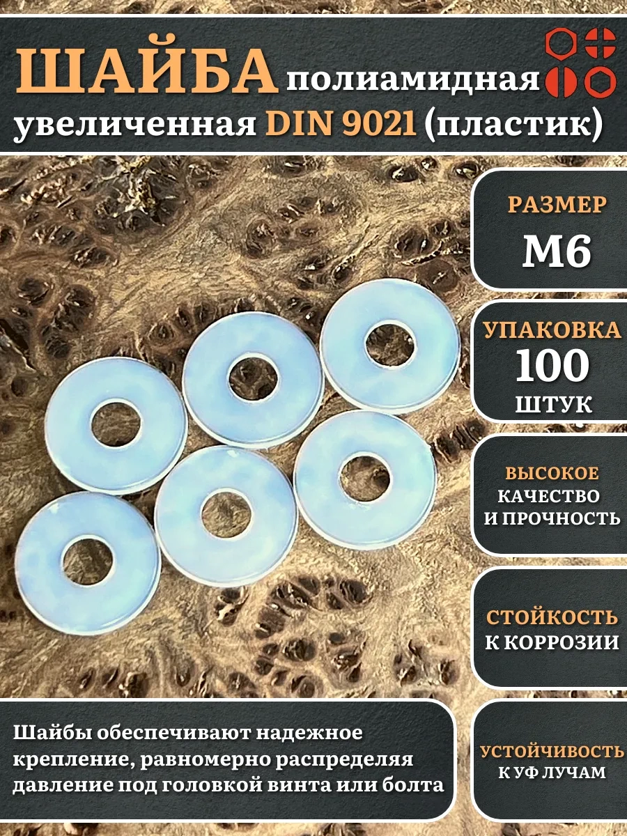 Шайба полиамидная увеличенная М6 DIN9021 (пластик), 100 шт.