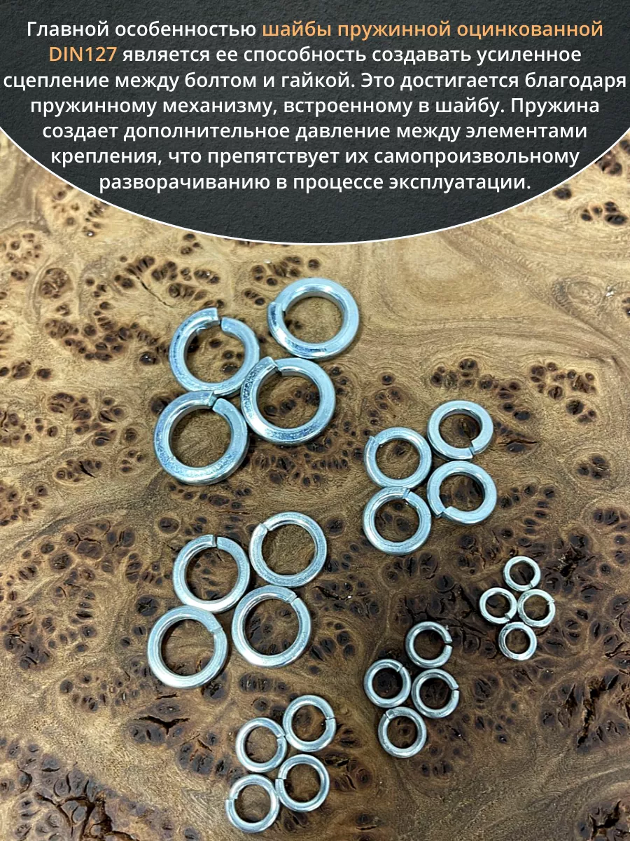 Шайба пружинная М4,5,6,8,10,12 ОЦ DIN127 (по 50 шт.)