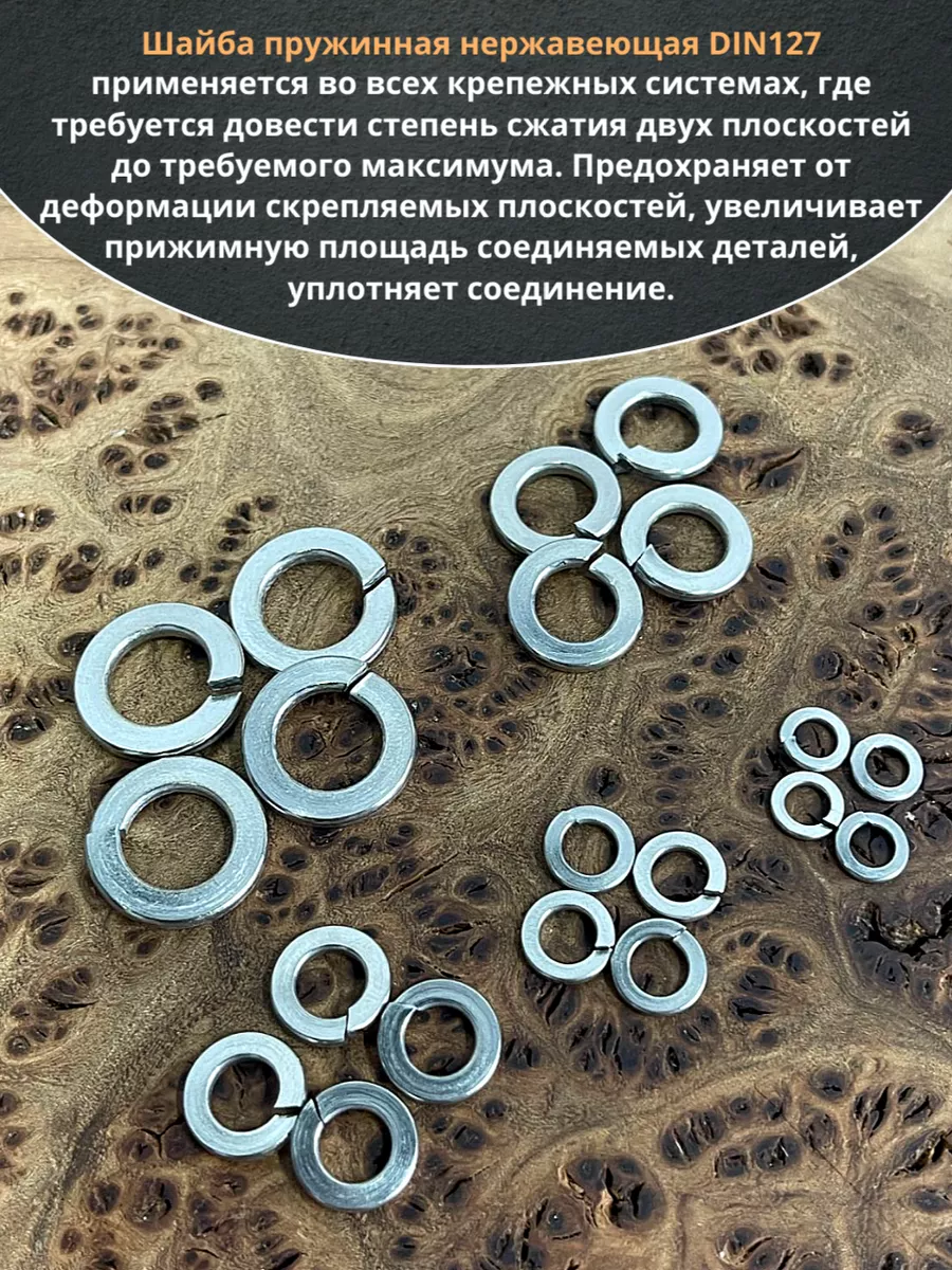 Шайба пружинная нержавеющая М4,5,6,8,10 DIN127 (по 10 шт)