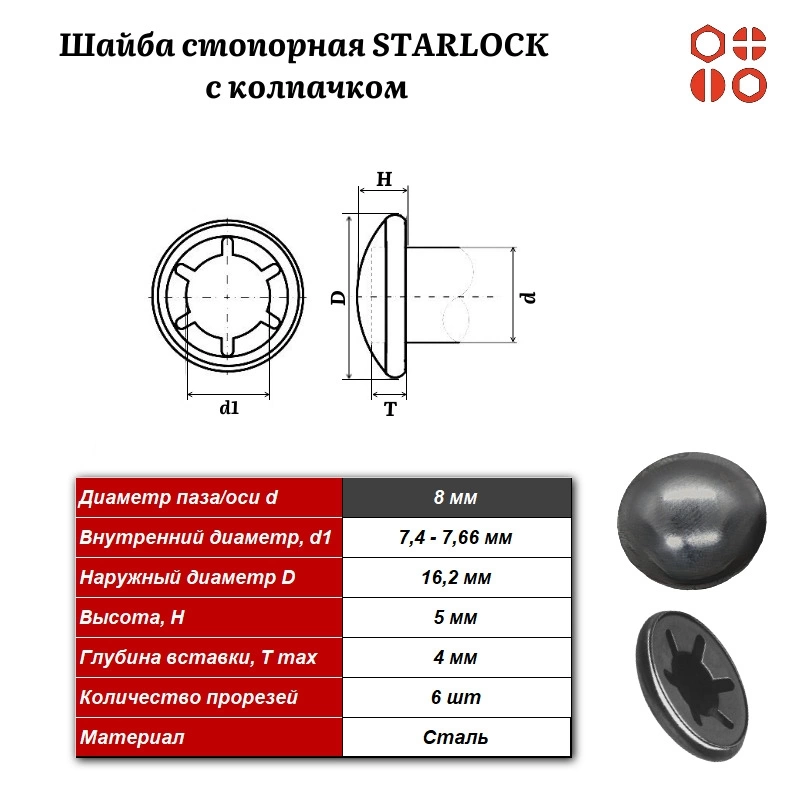 Шайба стопорная STARLOCK М8 с колпачком без покрытия, 1000 шт.