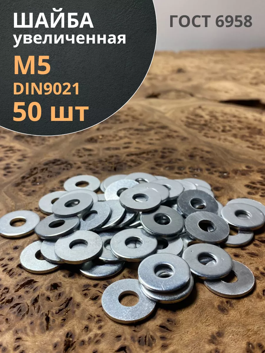 Шайба увеличенная оцинкованная М5 DIN 9021, 50 шт.