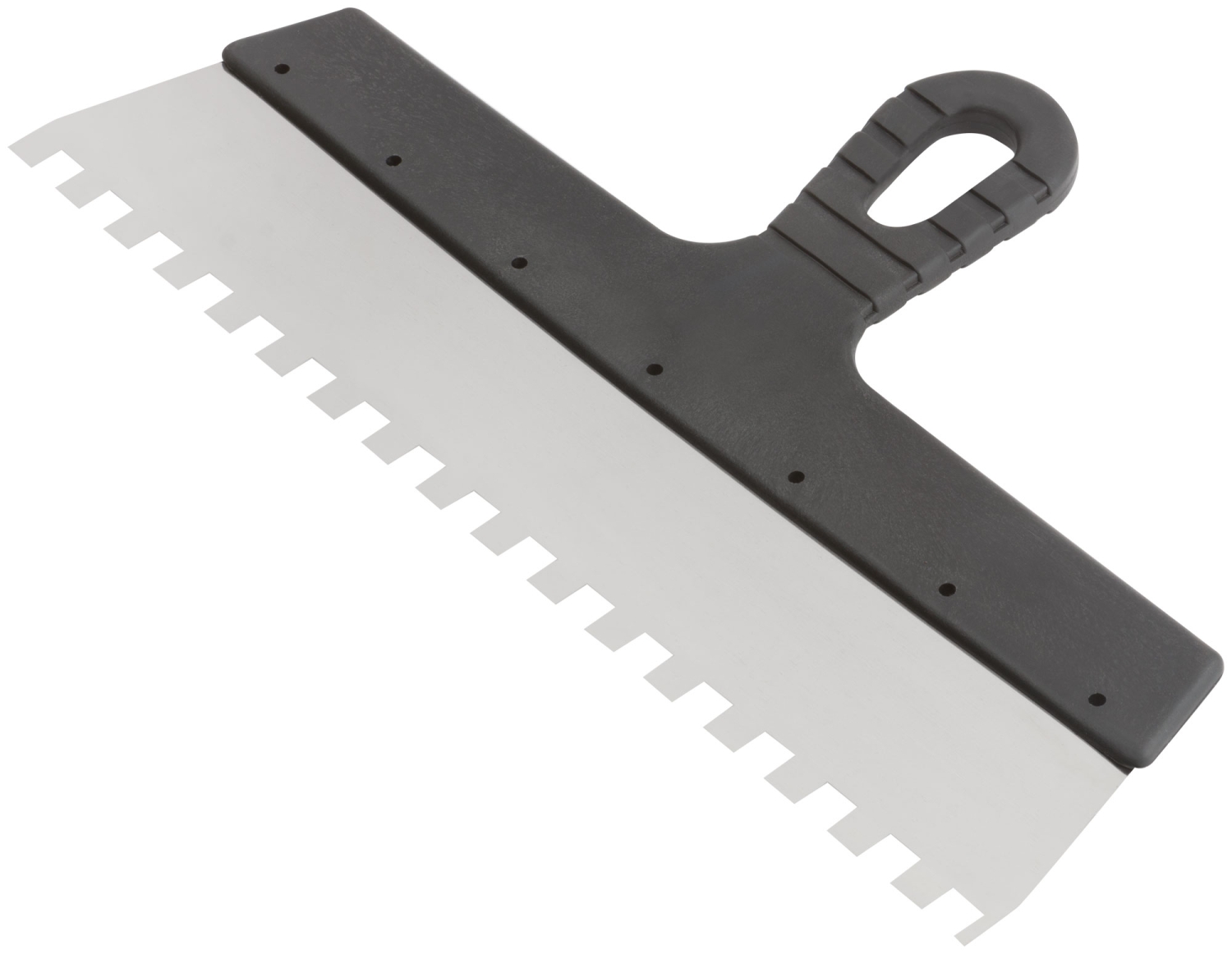 Зубчатый. Для работы на поверхностях большой площади. Материал: нержавеющая сталь, пластиковая ручка.