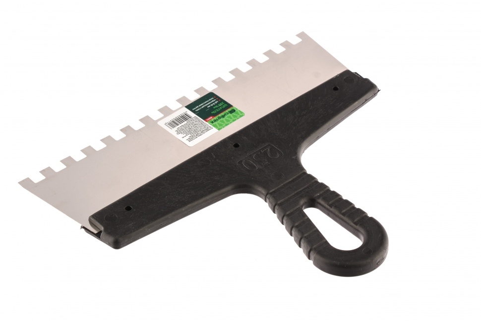 Шпатель из нерж.стали 250 мм зуб 8х8 мм пластмас.ручка Сибртех