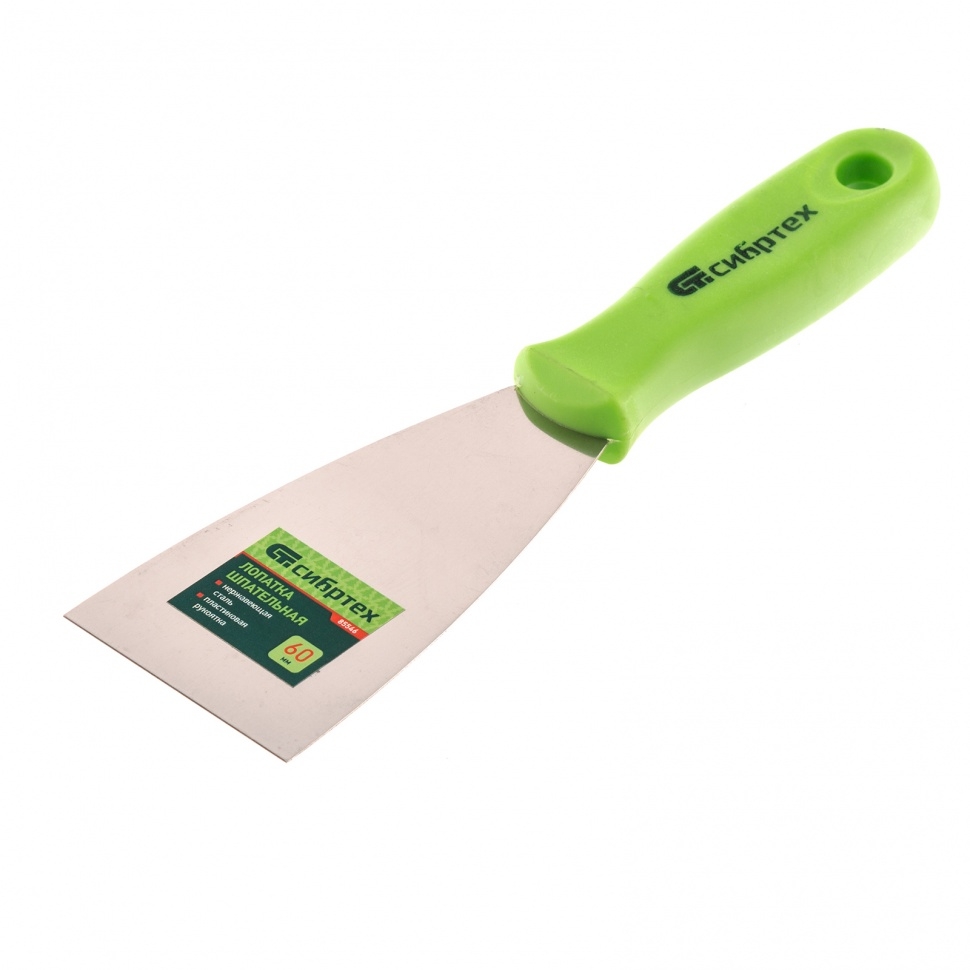 Шпательная лопатка Сибртех 85546 с полотном шириной 60 мм из нержавеющей стали, с пластмассовой ручкой, используется для нанесения, выравнивания и разглаживания строительных растворов и смесей. Пригодится для проведения ремонтно-отделочных работ, подходит для начинающих и профессиональных мастеров.