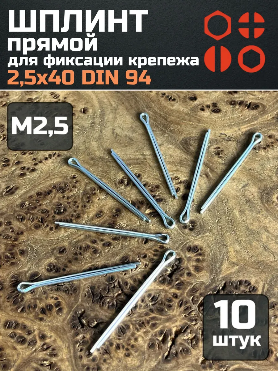 Шплинт прямой М2,5х40 DIN 94 для фиксации крепежа, 10 шт.