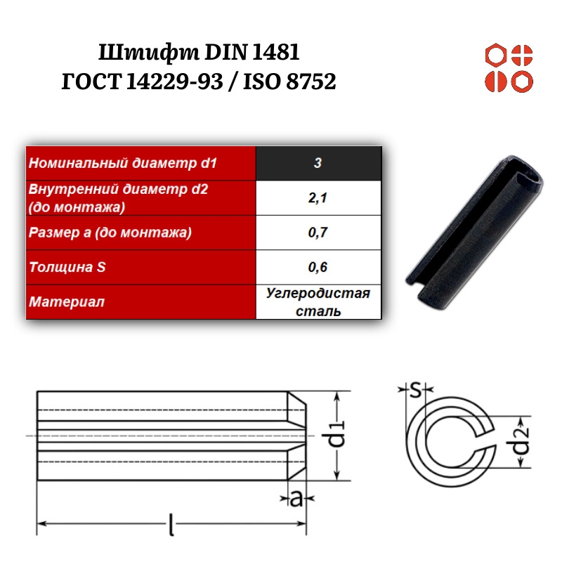 Штифт пружинный DIN 1481 3х10 / ГОСТ 14229-93 / ISO 8752, 1000 шт.