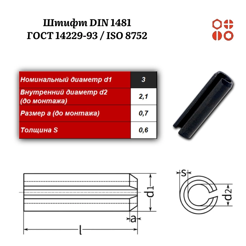 Штифт пружинный DIN 1481 3х6 / ГОСТ 14229-93 / ISO 8752, 1000 шт.