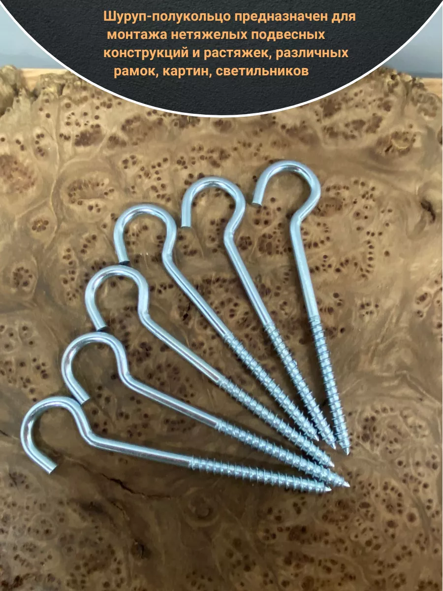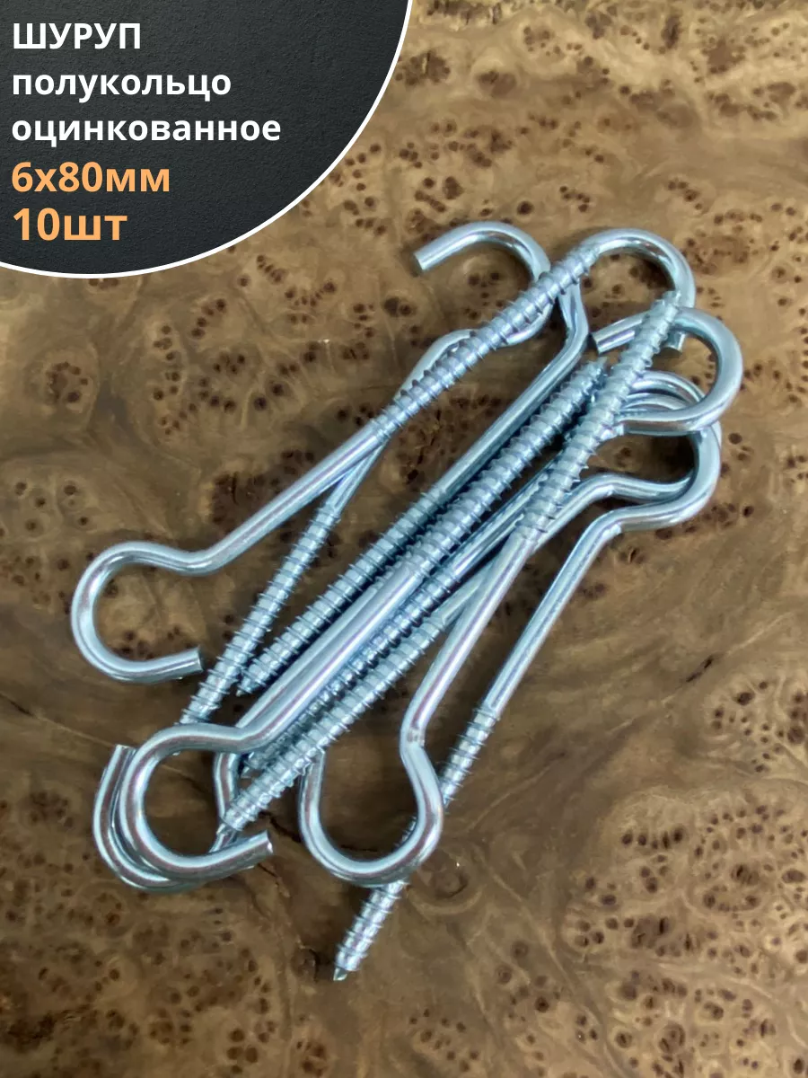Шуруп-полукольцо, 6х80 , оцинкованное 10 шт.