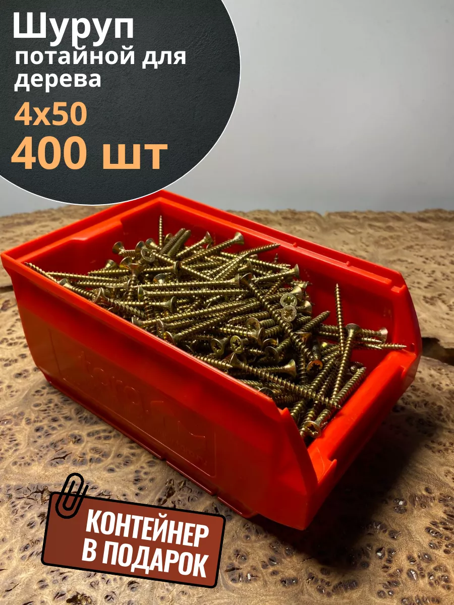 Шуруп потайной для дерева 4х50 ЖЦ, в контейнере, 400 шт.