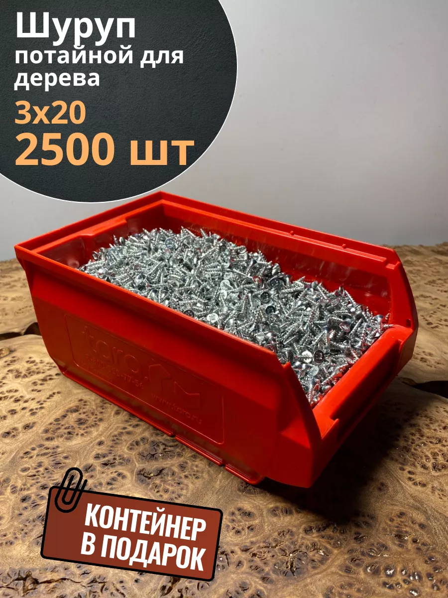 Шуруп потайной для дерева Б 3х20 БЦ,в контейнере, 2500 шт.
