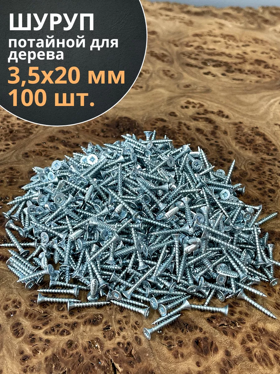 Шуруп потайной для дерева Б 3,5х20 БЦ, 100 шт.