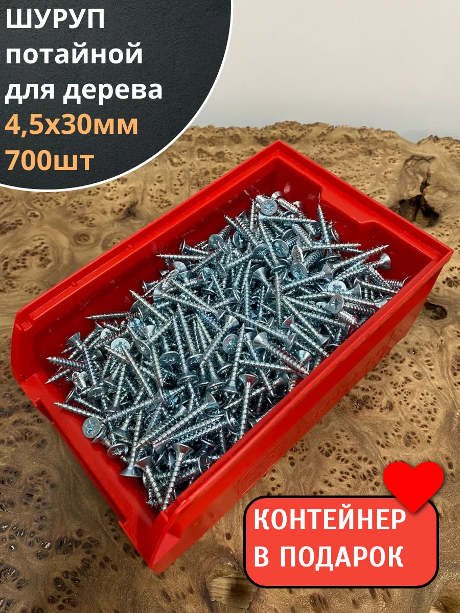 Шуруп потайной для дерева Б 4,5х30 БЦ в контейнере, 700шт.