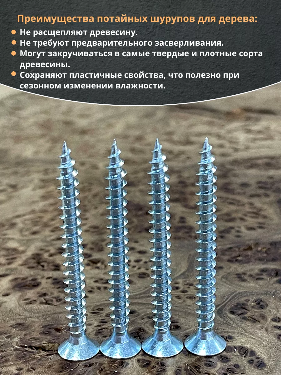 Шуруп потайной для дерева Б 6,0х60 БЦ, 100 шт.