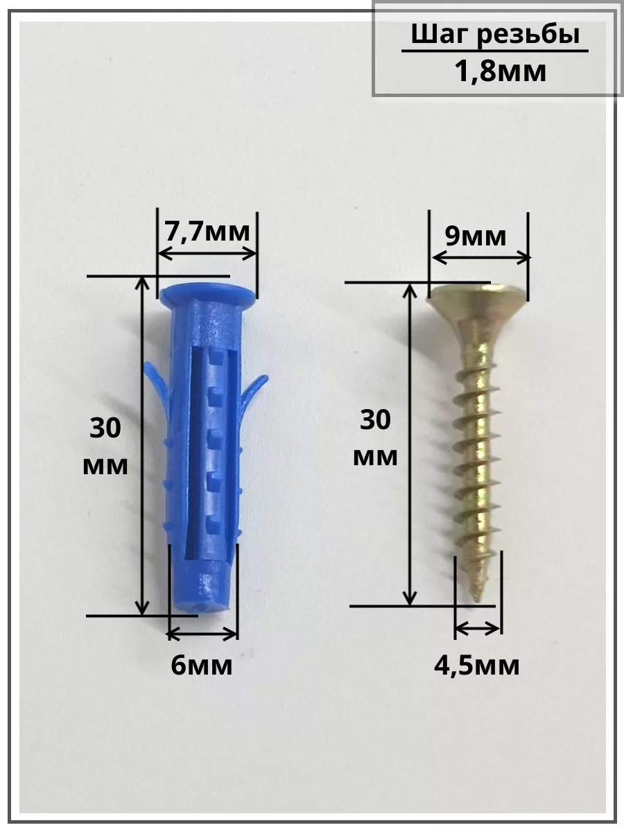 | Шуруп саморез 4,5х30 мм ЖЦ с дюбелем 6х30, 10 шт. | B04004503060N0Ф/B23300603006000ф10 | 1 шт. |