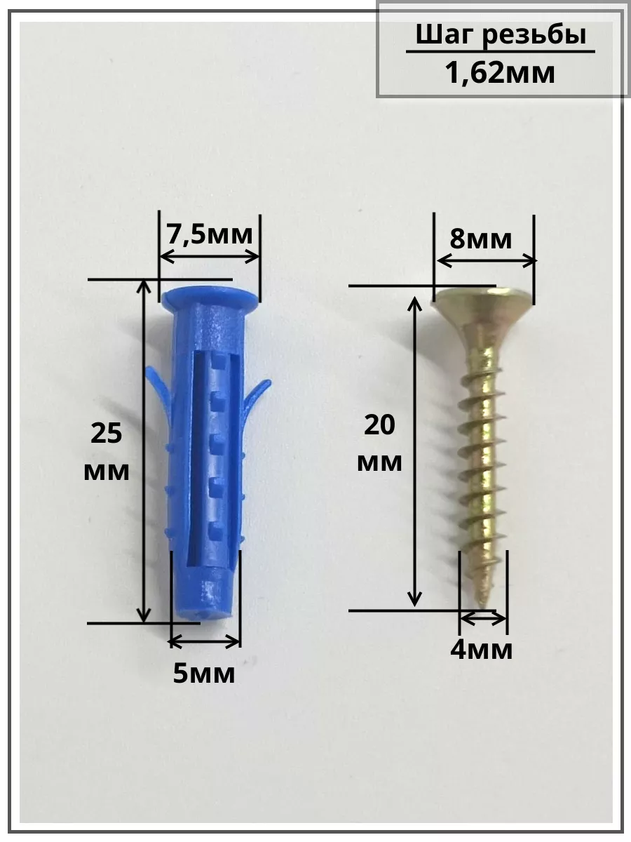Шуруп саморез 4х20 мм ЖЦ с дюбелем 5х25, 50 шт.