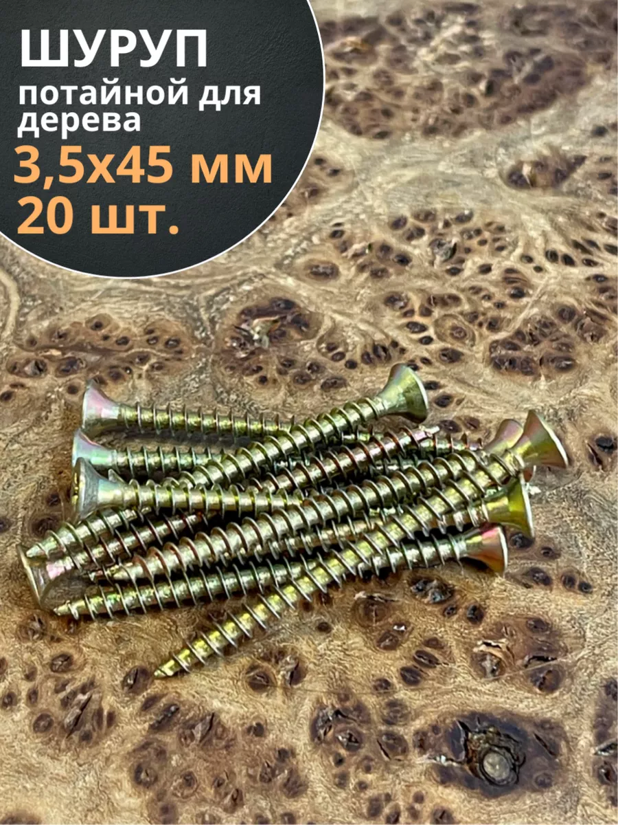 Шуруп саморез потайной для дерева 3,5х45 ЖЦ, 20 шт.