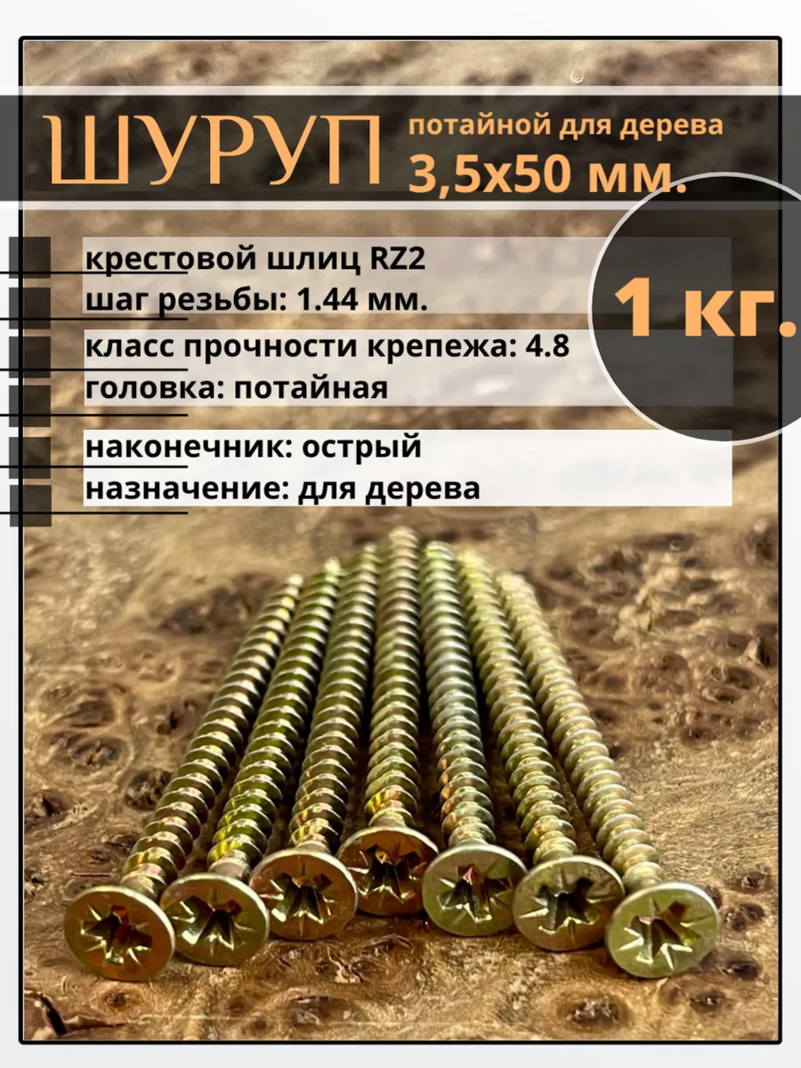 | Шуруп саморез потайной для дерева 3,5х50 мм, желтый цинк, 1 кг. | B04003505064007кг | 1 шт. |