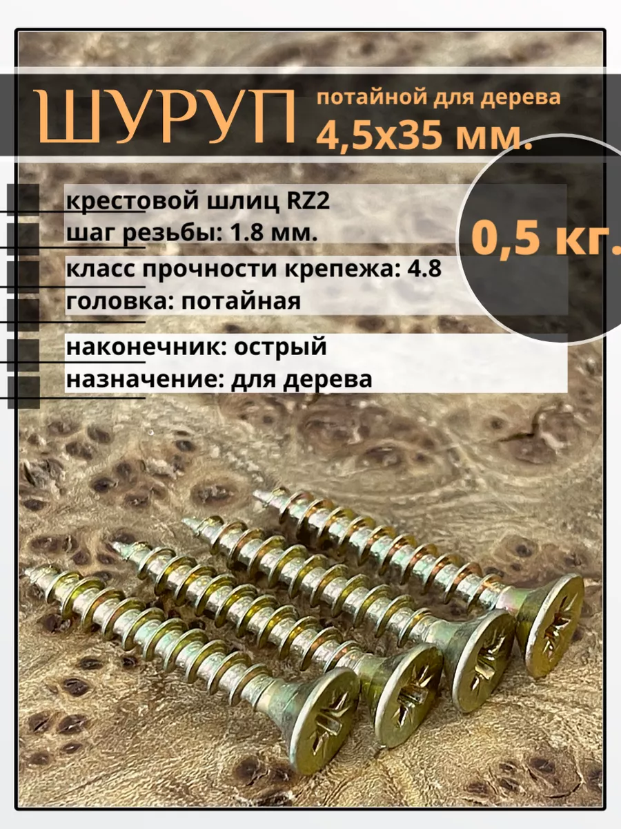 | Шуруп саморез потайной для дерева 4,5х35 мм, желтый цинк, 1 кг. | B04004503567R07кг | 1 шт. |