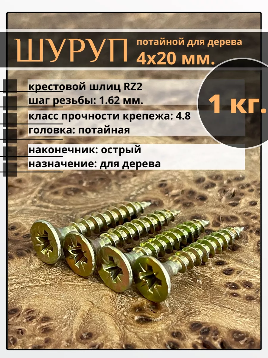 | Шуруп саморез потайной для дерева 4х20 ЖЦ, 0,5 кг. | B04004002063G07г500 | 1 шт. |
