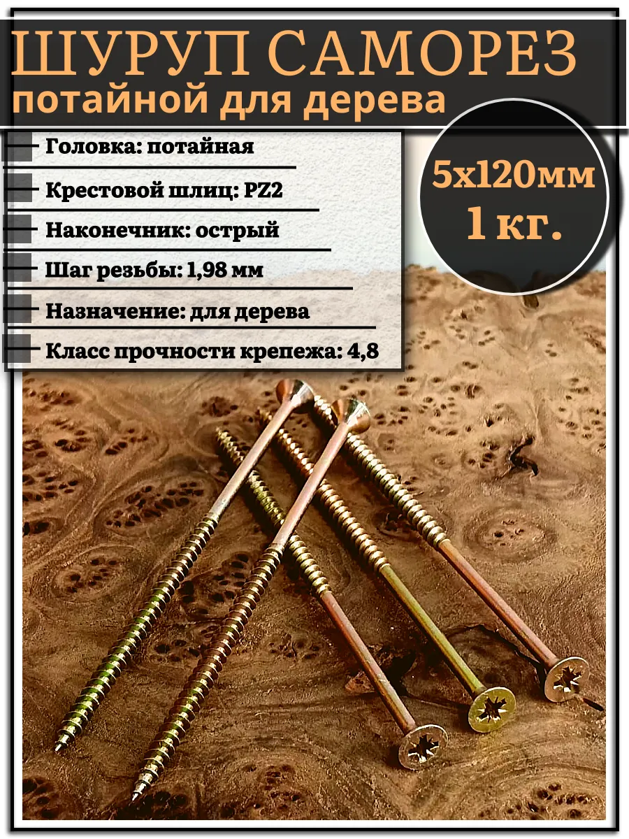 Шуруп саморез потайной для дерева 5х120 ЖЦ, 1 кг.