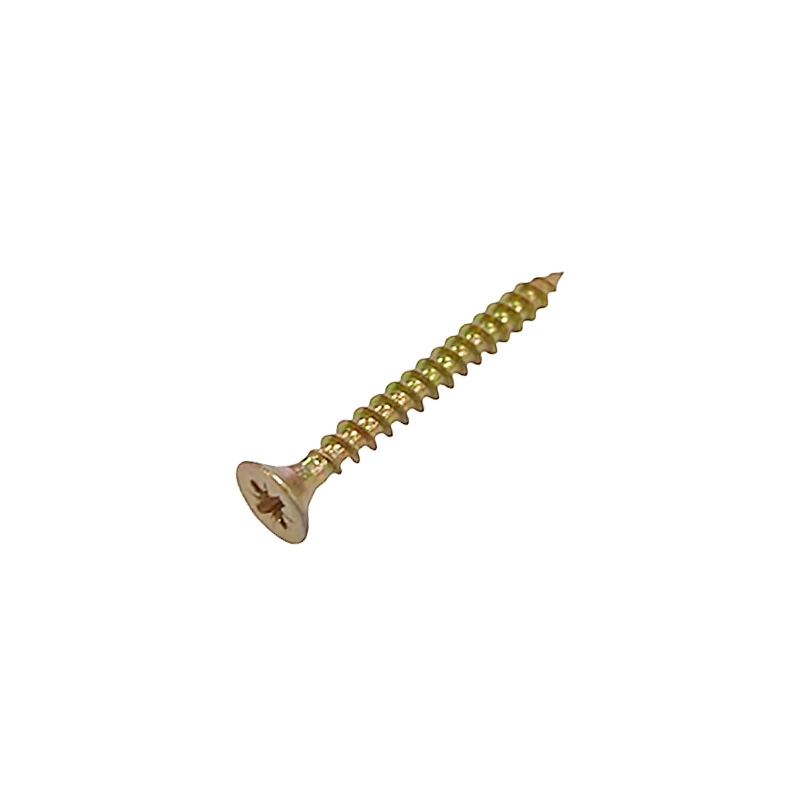Шуруп саморез потайной для дерева 5х40 мм, желтый цинк, 1 кг. представляет собой стержень с головкой и острым наконечником. Универсальность проявляется в конструкции и области применения. Назначение шурупа — стягивать, скреплять между собой элементы: деревянных, древесностружечных и гипсокартонных плит, из тонкого листового металла. Он аккуратно и быстро вкручивается в материал без предварительного сверления, обеспечивая надежное соединение с основой. Крепежное изделие изготовлено из оцинкованной стали с дополнительной пассивацией. Саморез имеет желтый цвет. Его классическая конструкция включает заостренный цилиндрический стержень с винтовой нарезкой по всей длине, а также потайную головку с крестообразным шлицем PZ. Этот элемент служит для передачи крутящего момента от инструмента – отвертки, шуруповерта при закручивании или выкручивании крепежа.
