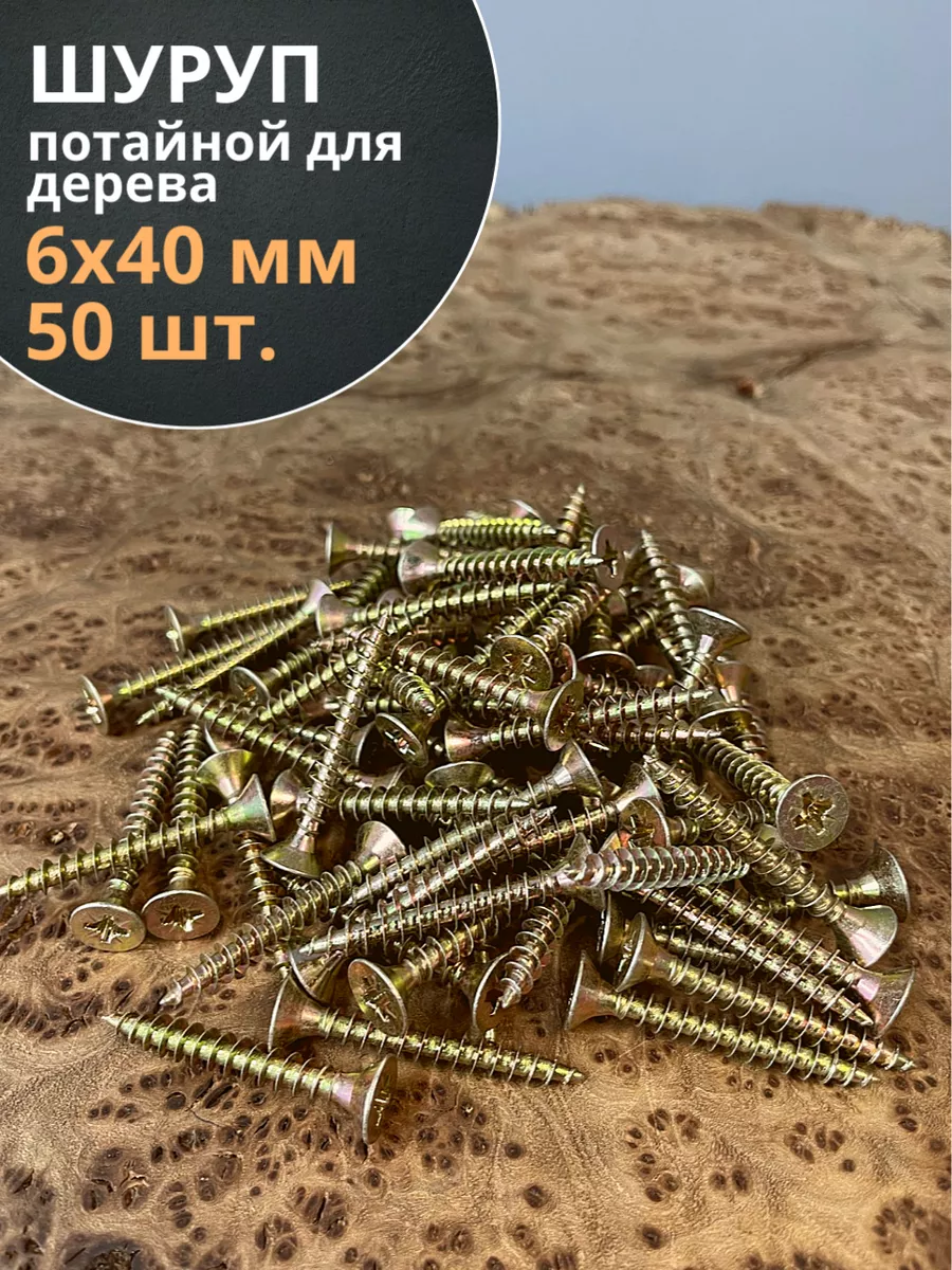Шуруп саморез потайной для дерева 6х40 ЖЦ, 50 шт.