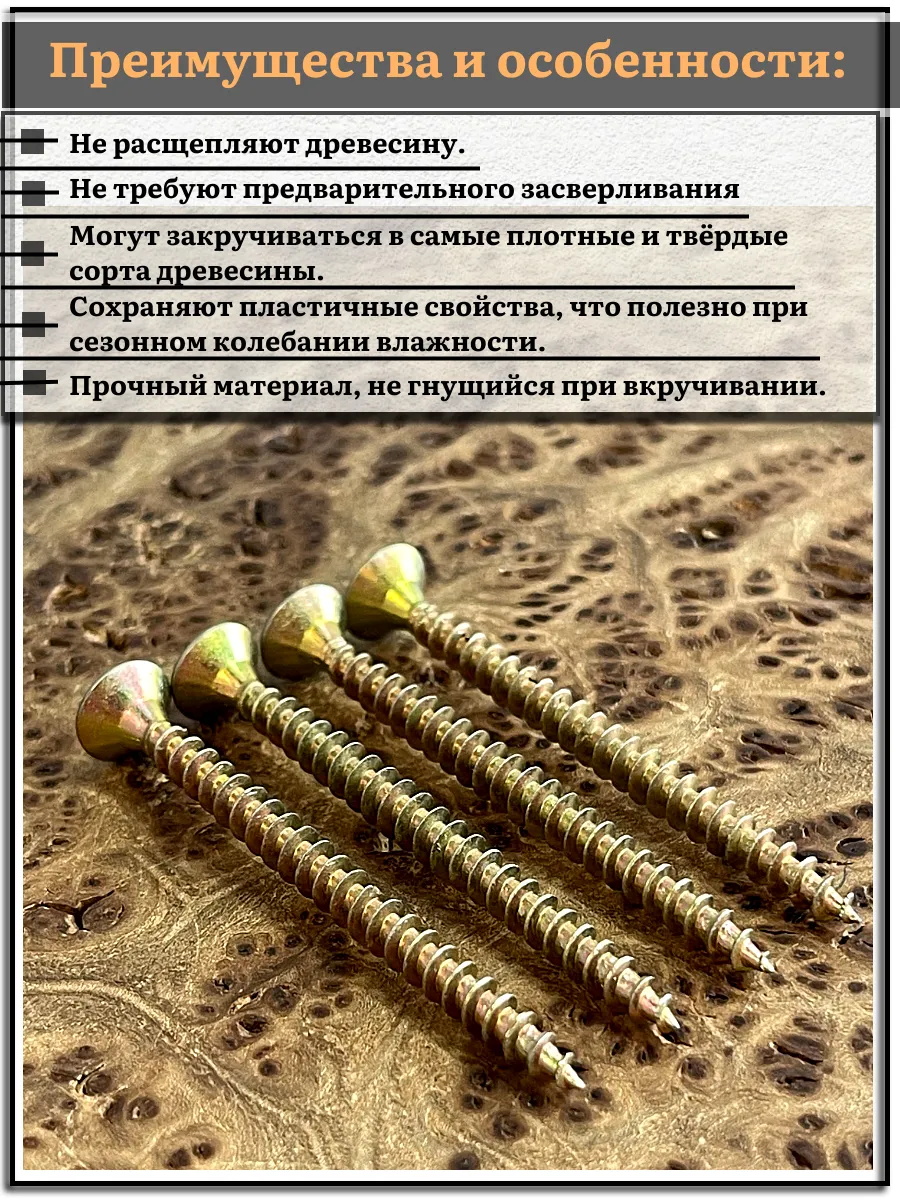 Шуруп саморез потайной для дерева 6х70 мм, желтый цинк, 1 кг.