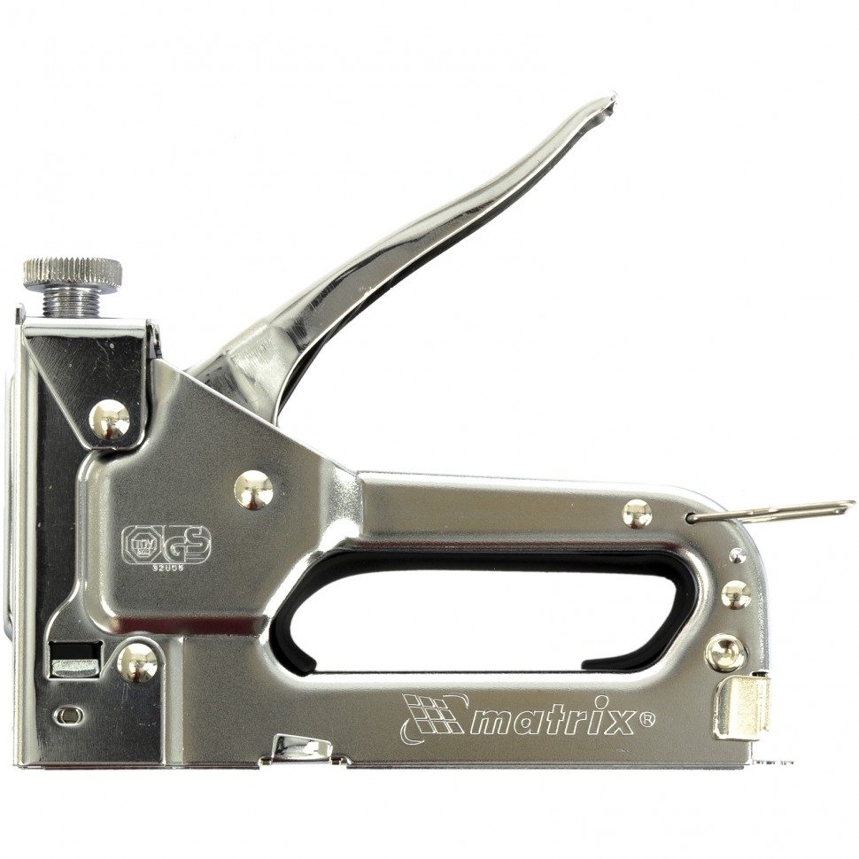 Регулируемый мебельный степлер Matrix 40902, предназначенный для скоб типа 53 размером 4-14 мм, используется для быстрого скрепления с деревянным основанием листовых материалов — фанеры, картона, оргалита, ДВП, ДСП, пленки или утеплителя. Корпус изготовлен методом штамповки из высококачественной стали, поэтому прочен и долговечен. Степлер пригодится для сборки и обивки мебели, монтажа теплоизоляции, а также будет полезен в быту.