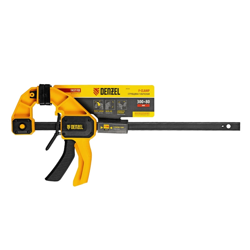 Струбцина тип F усиленная быстрозажимная, нейлоновый корпус 80х300 мм Denzel