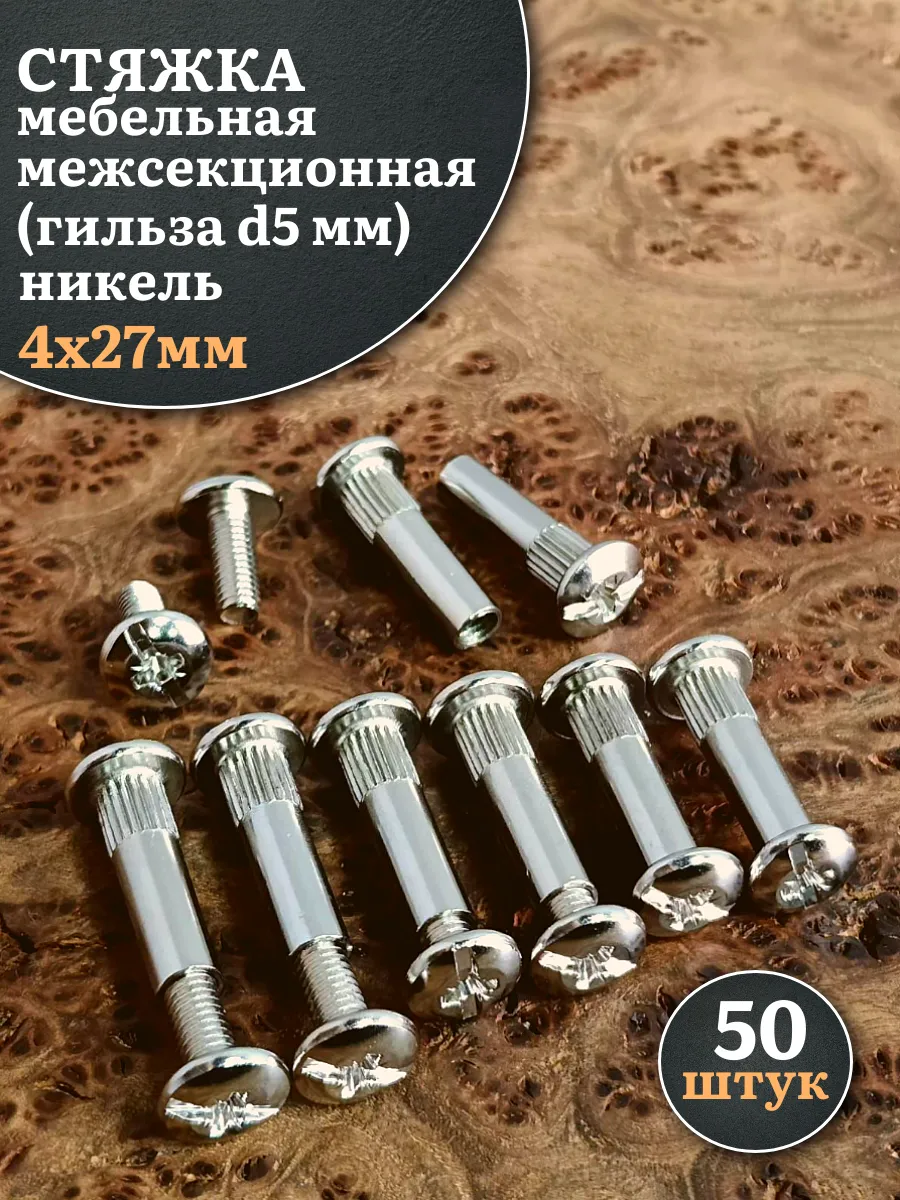 Стяжка мебельная межсекционная 4х27 (гильза d5мм)никель 50шт