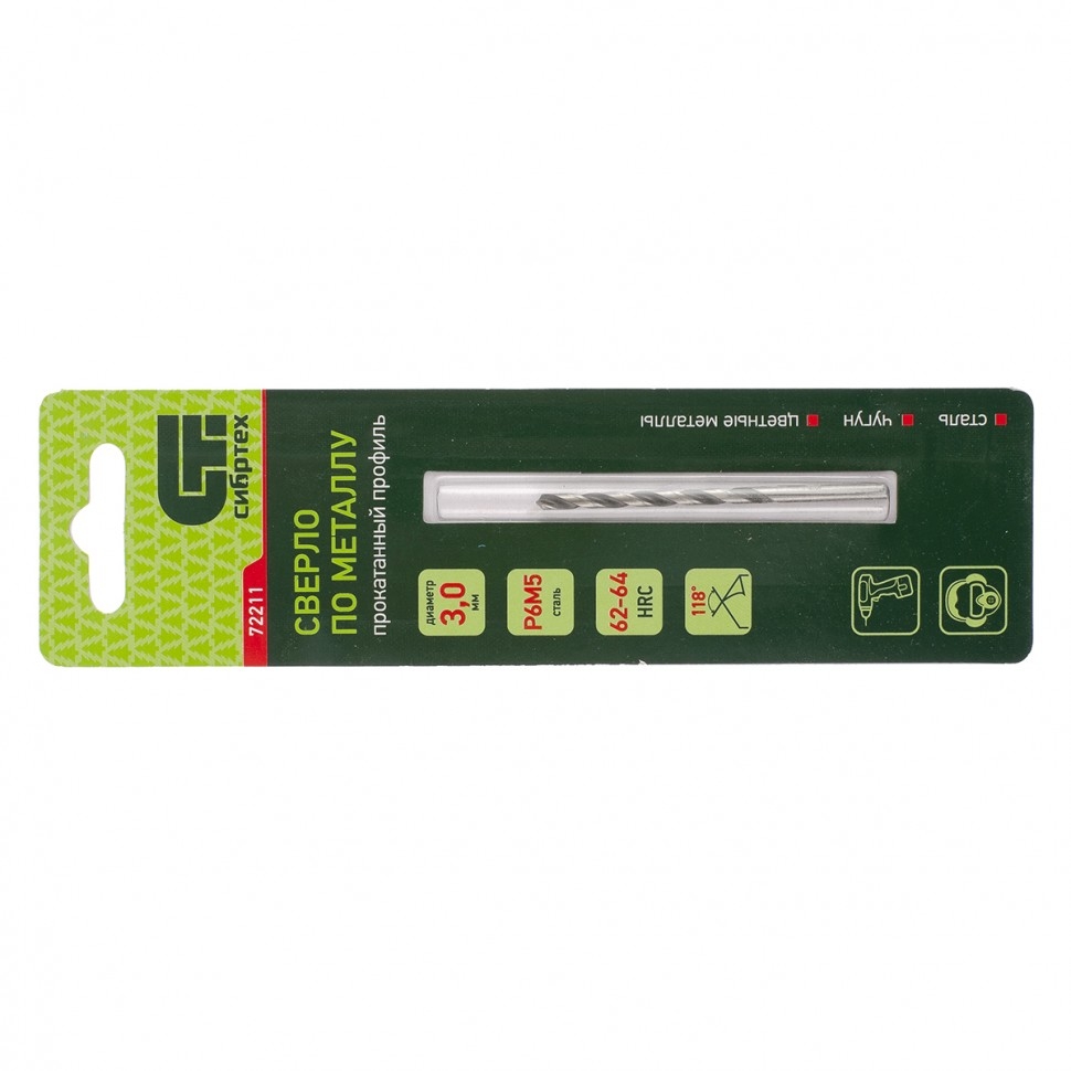 Сверло по металлу 3,0 мм Р6М5 Сибртех