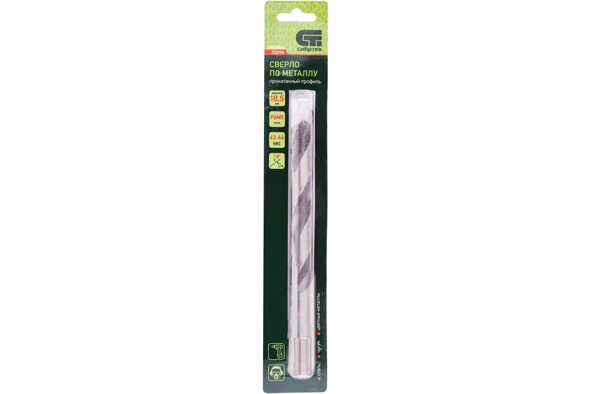 Сверло по металлу 18,5 мм Р6М5 Сибртех 72296 1 шт.
