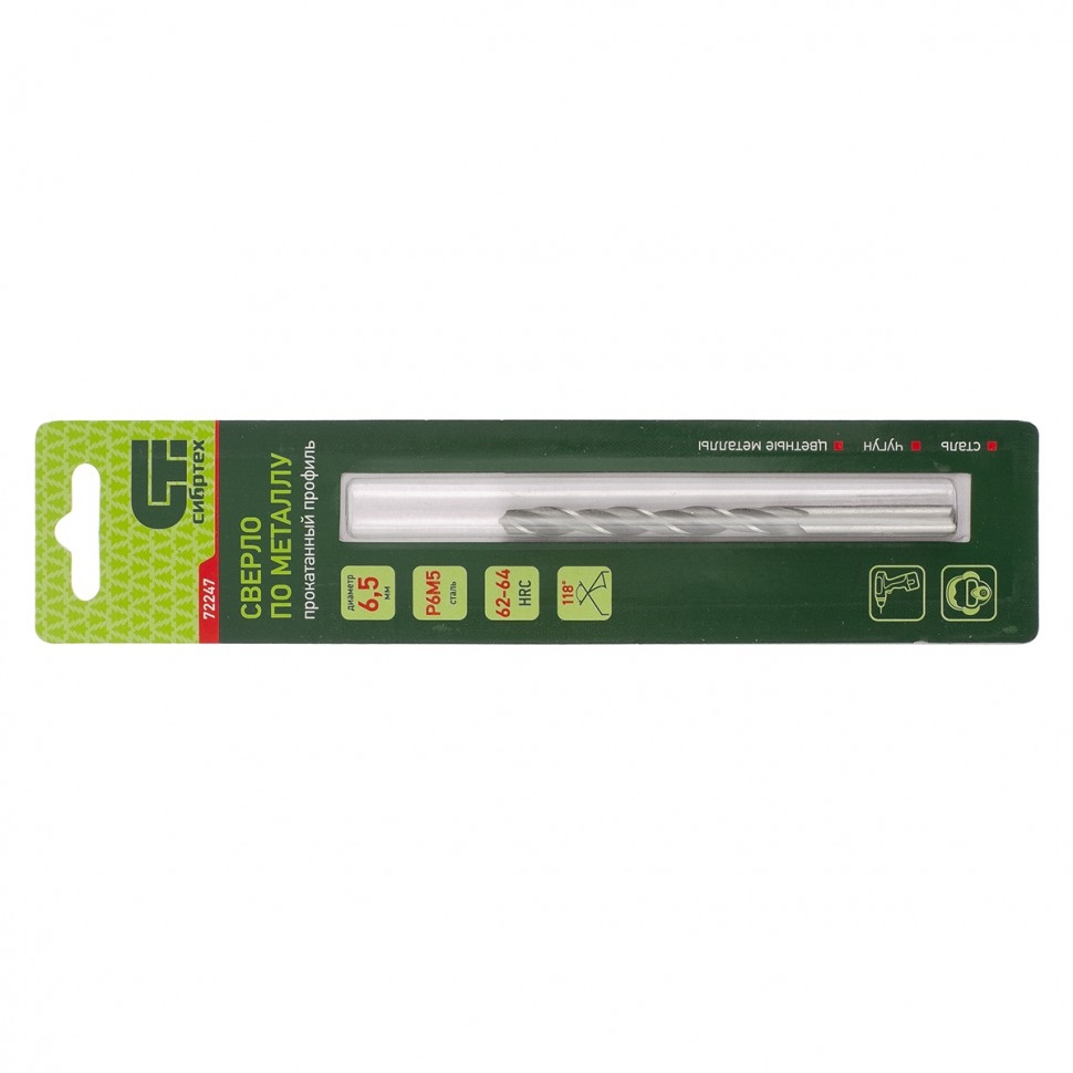 Сверло по металлу 6,5 мм Р6М5 Сибртех 72247 1 шт.
